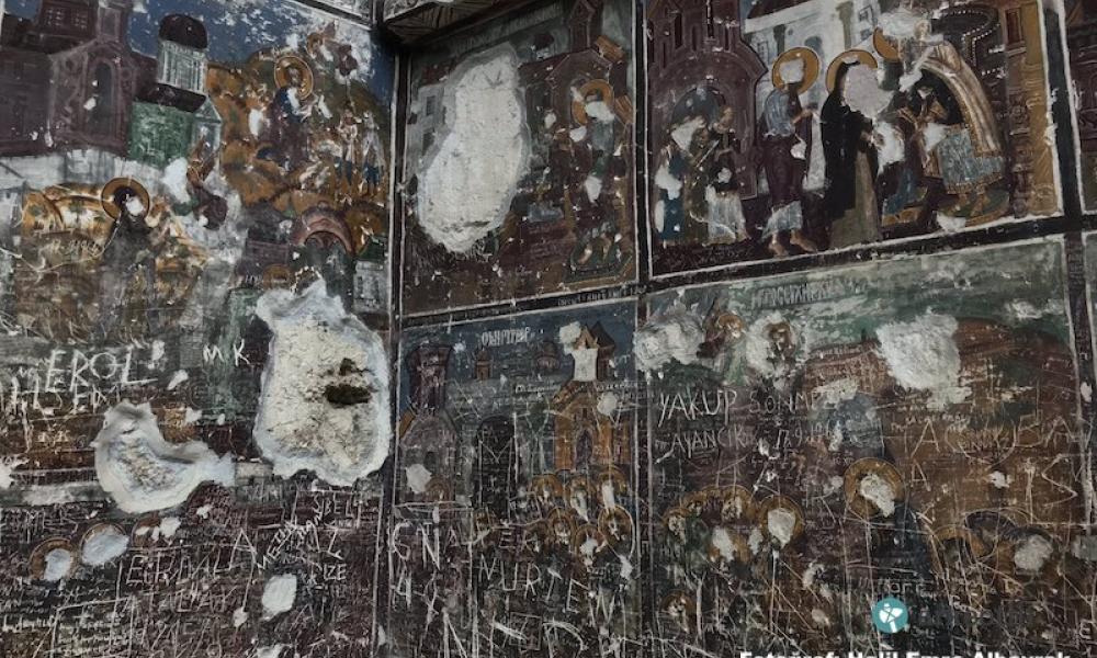 Πολλά από τα πρόσωπα στις τοιχογραφίες του ιστορικού μοναστηριού έχουν κομματιαστεί, ενώ πλέον λόγω των ονομάτων που έχουν γράφει πάνω τους, δεν είναι πια ορατές.