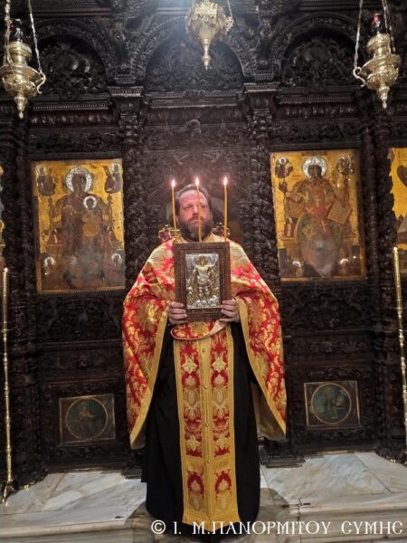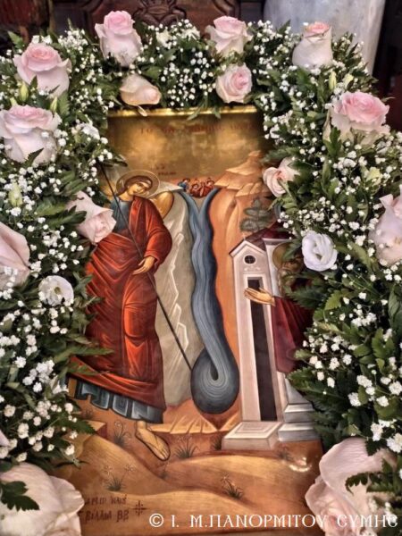 Σήμερα, κυριώνυμον ημέρα της εορτής, χοροστατούντος του Σεβασμιωτάτου Μητροπολίτου Σύμης, Τήλου-Χάλκης και Καστελλορίζου κ. Χρυσοστόμου ετελέσθη ο Όρθρος και η Θεία Λειτουργία, συλλειτουργούντων του Καθηγουμένου της Ι. Μονής Αρχιμ. Αντωνίου Πατρού, του φιλοξενουμένου Αρχιμ. Ιωαννικίου Αναγνώστου, του Οικον. Αντωνίου Κασιώτη και του Διακόνου μας Γεωργίου Κακακιού.